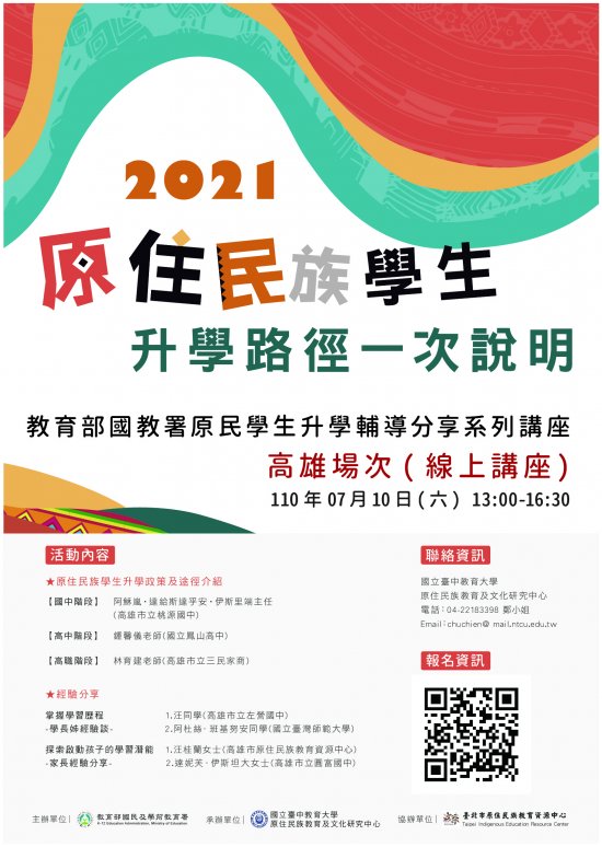 提供原住 民族學生及家長了解相關政策及升學訊息,講座資訊如下: