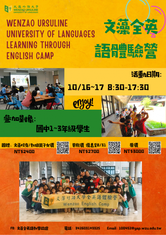 主旨:文藻學校財團法人文藻外語大學開辦國中英語體驗營