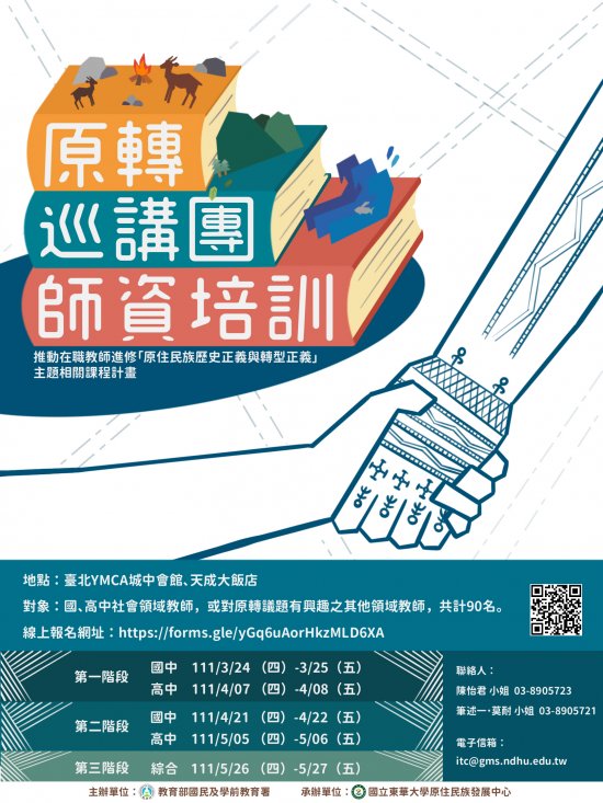 (三)培訓對象:國、高中社會領域教師,或對原轉議題有興趣之其他領域教師,共計90名。完整參加三階段課程及各階段所交付作業,即授予培訓證書與成為原轉巡講團師資。