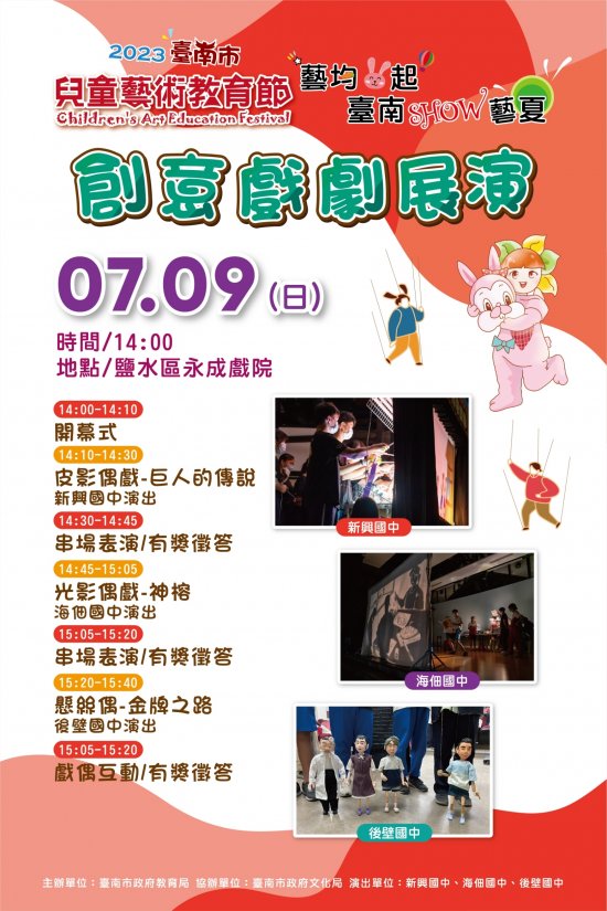 一、 依據 2023 臺南市兒童藝術教育節系列活動規劃辦理。