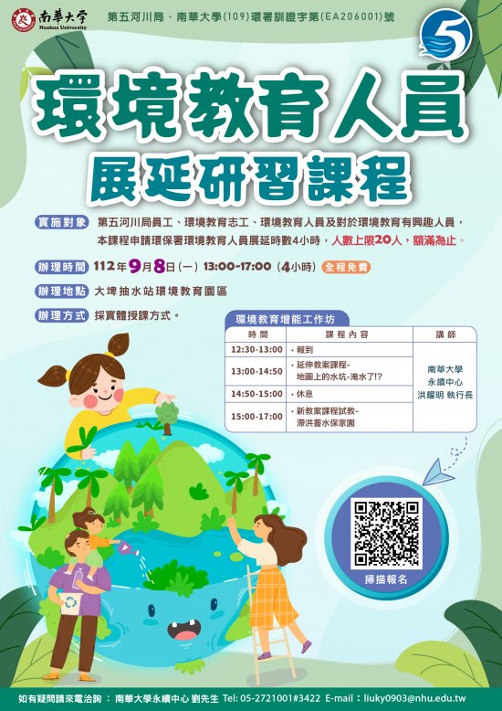 二、 辦理日期:112 年 9 月 8 日(星期五)13 時至 17 時,可申請環境教育人員展延時數 4 小時。