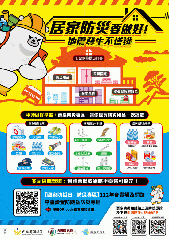 2.家具固定防震準備指引: https://reurl.cc/edEvNR