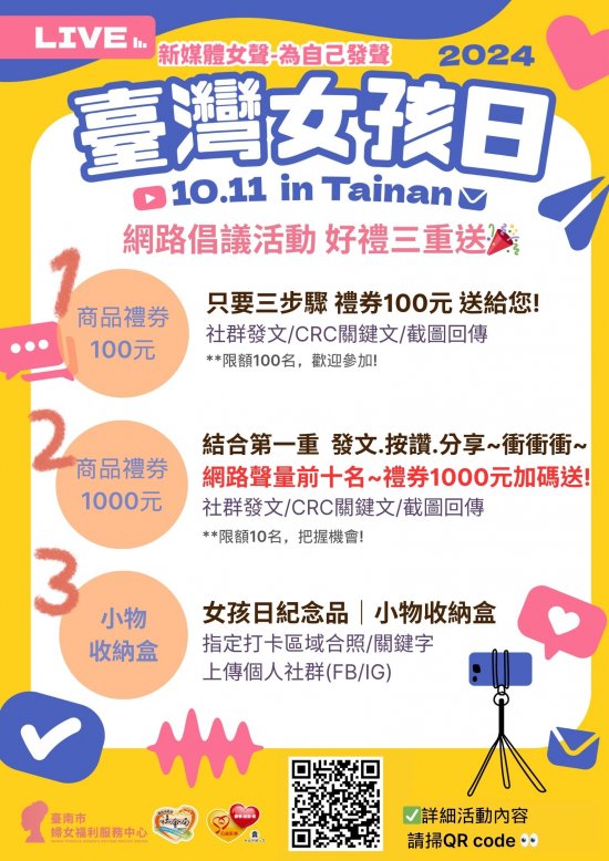 (一)2024 臺灣女孩日網路倡議活動-好禮三重送
