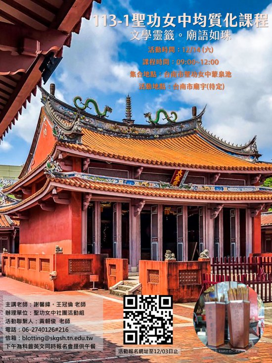 四、活動地點:臺南市天主教聖功女子高級中學。(臺南市北區北園街 87 巷 64 號)