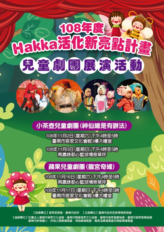 主旨:檢送臺南市政府「108 年度 Hakka 活化新亮點計畫─兒童劇團展演活動」海報電子檔