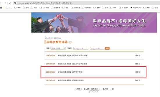 (五)本學習單請至教育部「防制學生藥物濫用資源網 (  https://enc.moe.edu.tw/  )」-「最新消息」下載運用。