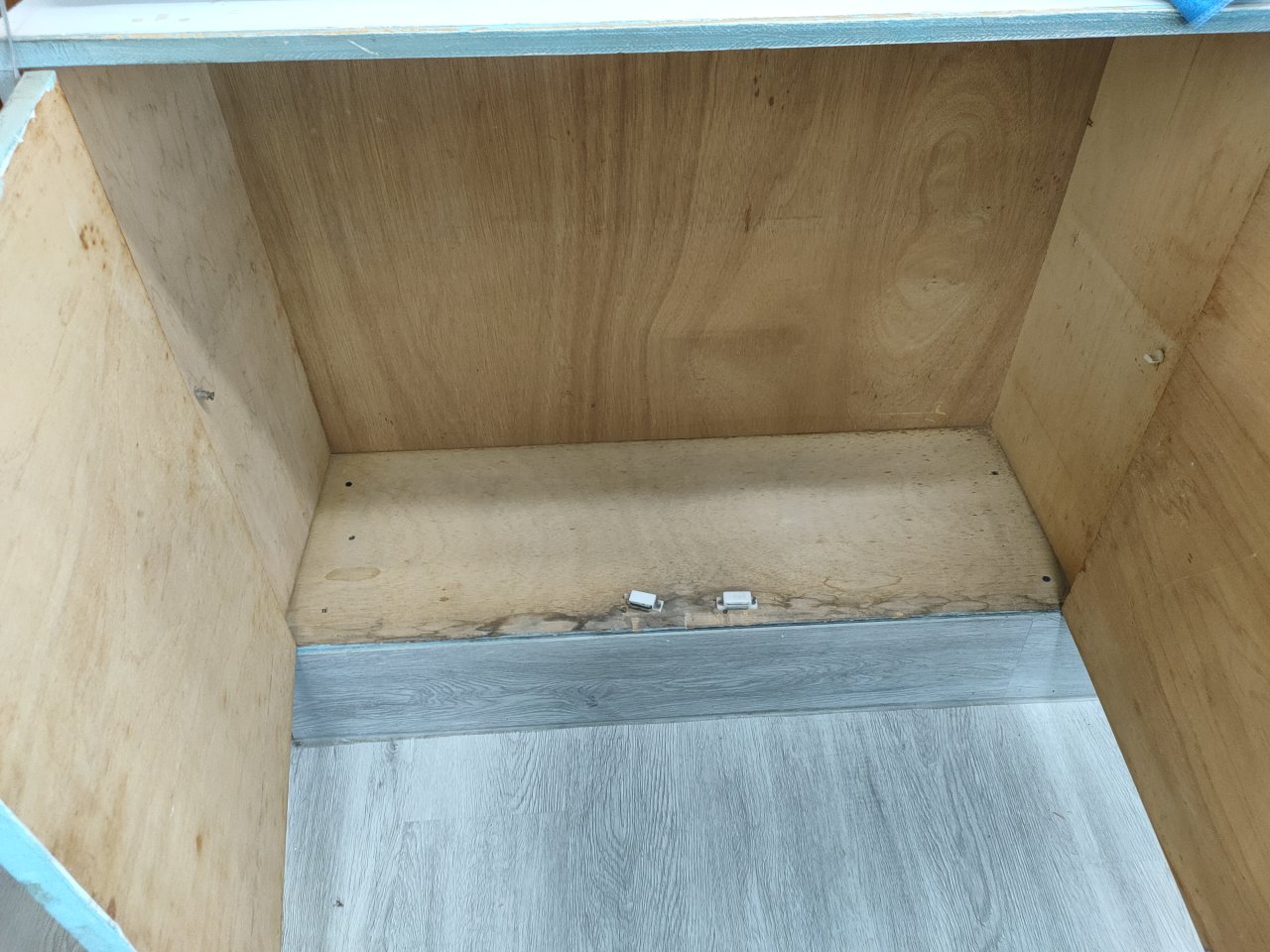 508 面對黑板的左側櫃子,缺少一片隔板,無法分層使用。