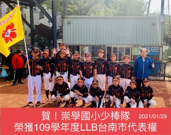 賀!崇學國小棒球隊榮獲109學年度LLB台南市代表權!