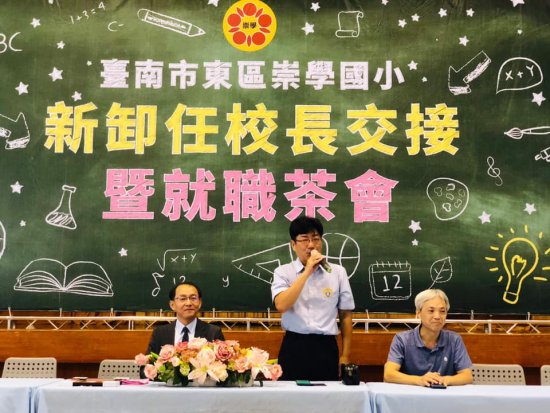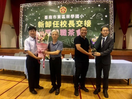 學校於 108 年 8 月 2 日上午 10:00 於本校崇學館舉行新卸任校長交接暨就職茶會,會中家長會郭育志會長,特別代表所有家長感謝即將卸任的葉和源校長,感恩葉校長 8 年任內對崇學國小的付出及貢獻。另外也期許新任校長洪榮進校長接棒繼續將崇學帶往更卓越的境界。