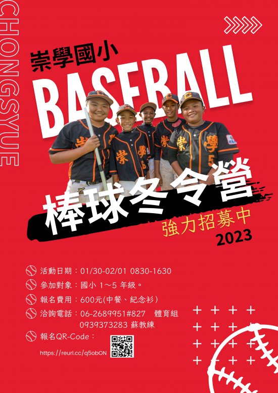崇學國小棒球冬令營招生中,歡迎有興趣的小朋友踴躍報名!!