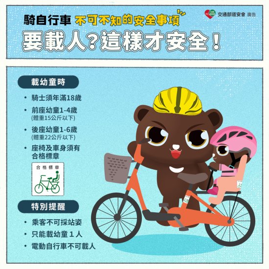 轉發教育局資訊~請強化學生自行車騎乘安全教育,騎乘上路前務必配戴自行車專用安全帽,以維用路安全。