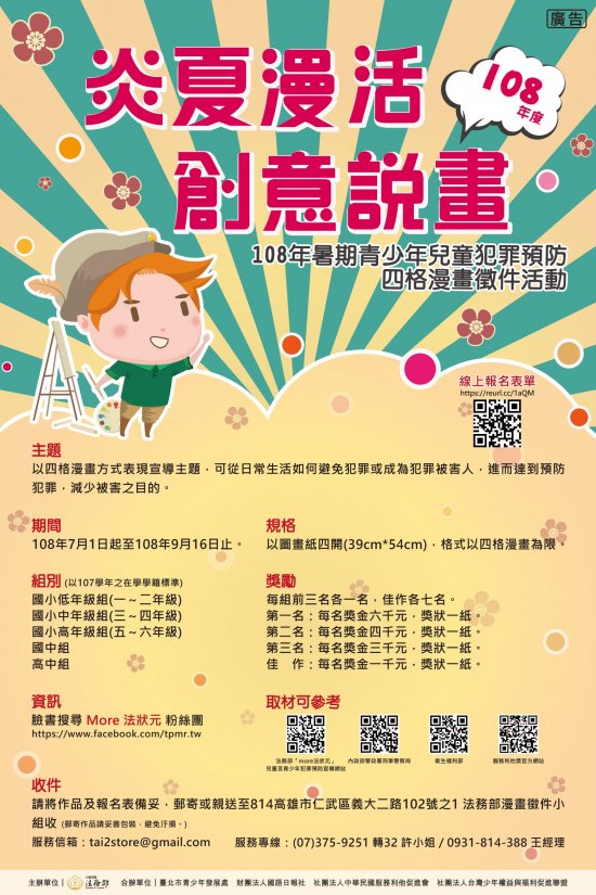 (一)法務部兒童及青少年犯罪預防宣導網(http://tpmr.moj.gov.tw/Campaign)