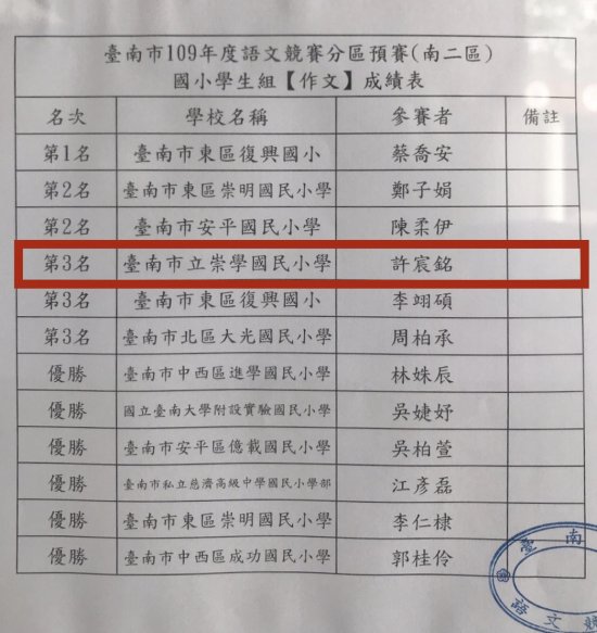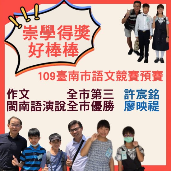 賀 !本校參加台南市語文競賽榮獲佳績!