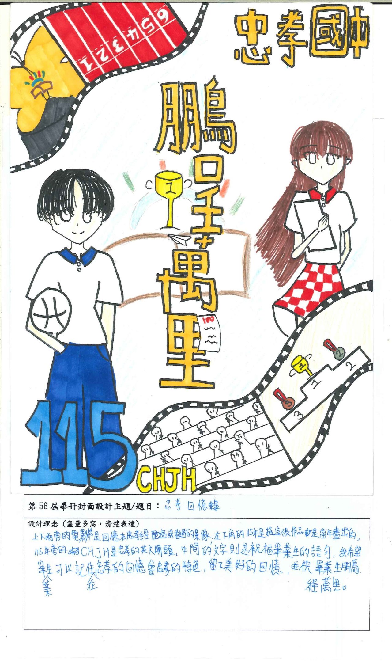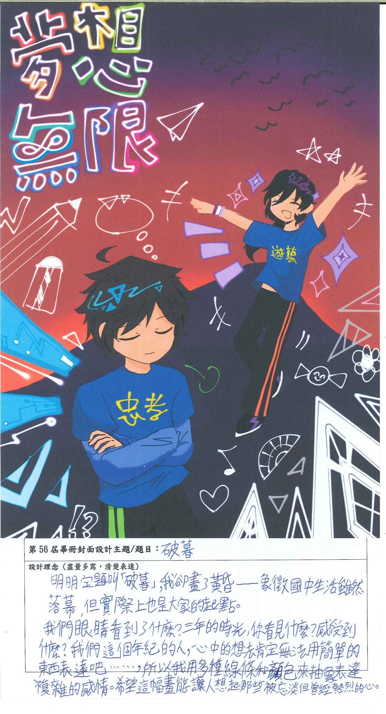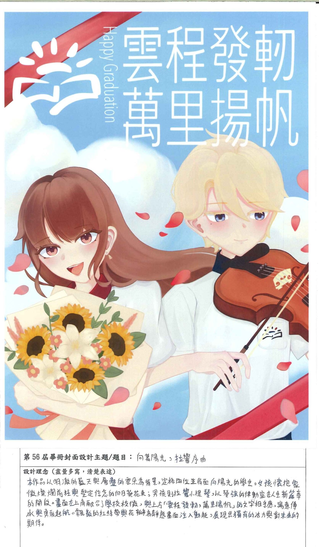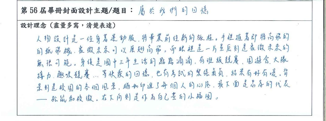 () 得票第1名作品製作為畢業紀念冊封面,第2名作品放置於封底,其餘為畢業紀念冊內頁之插圖。