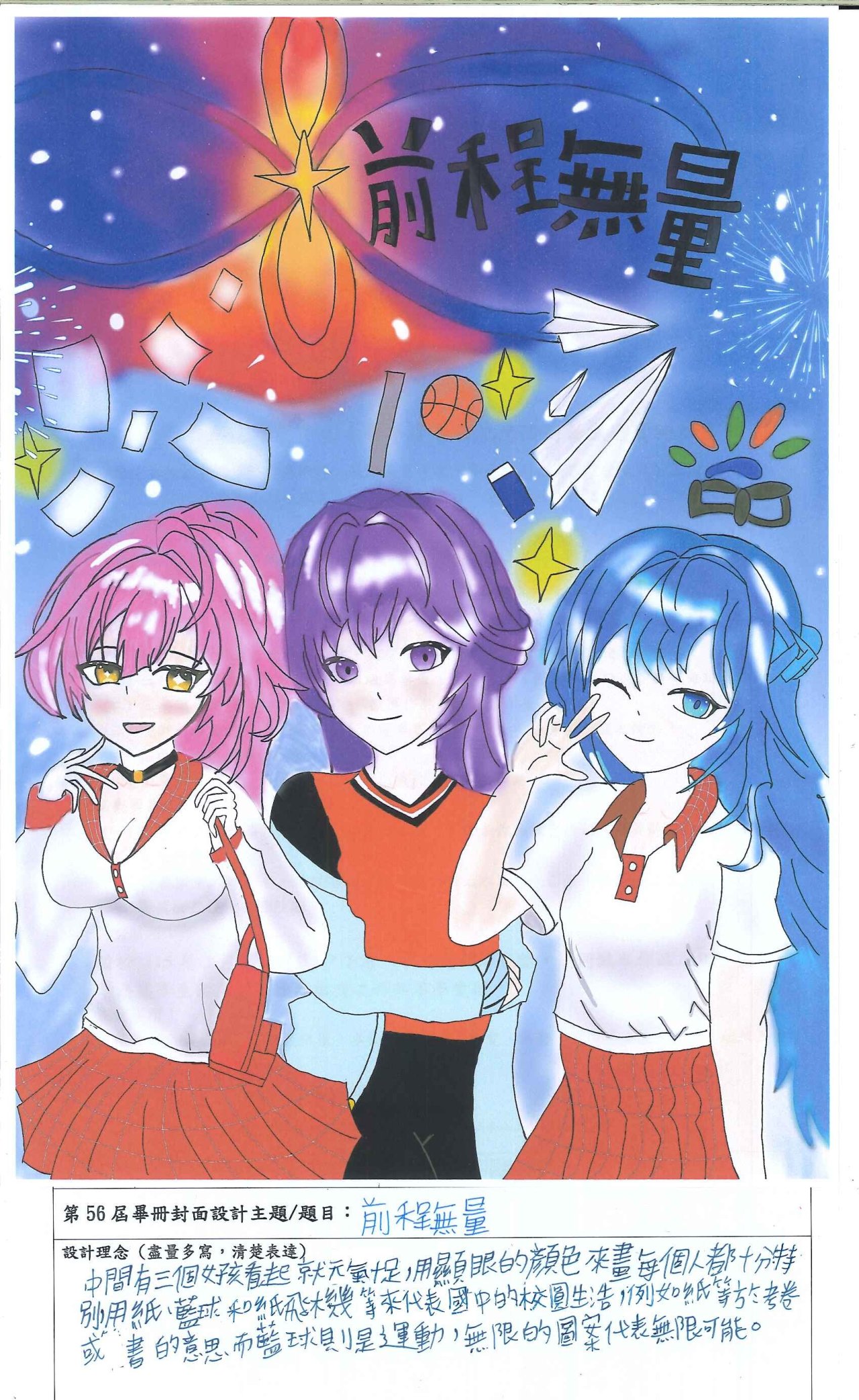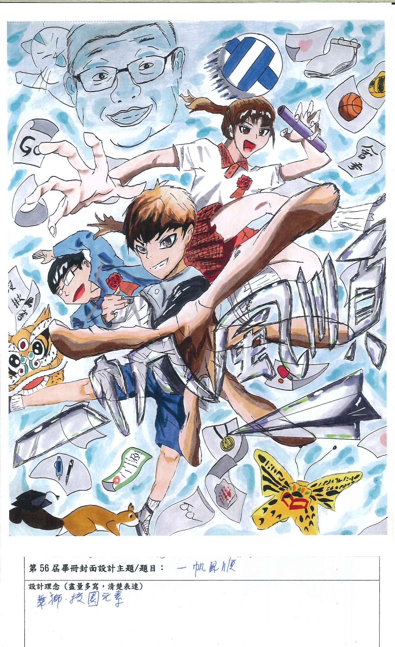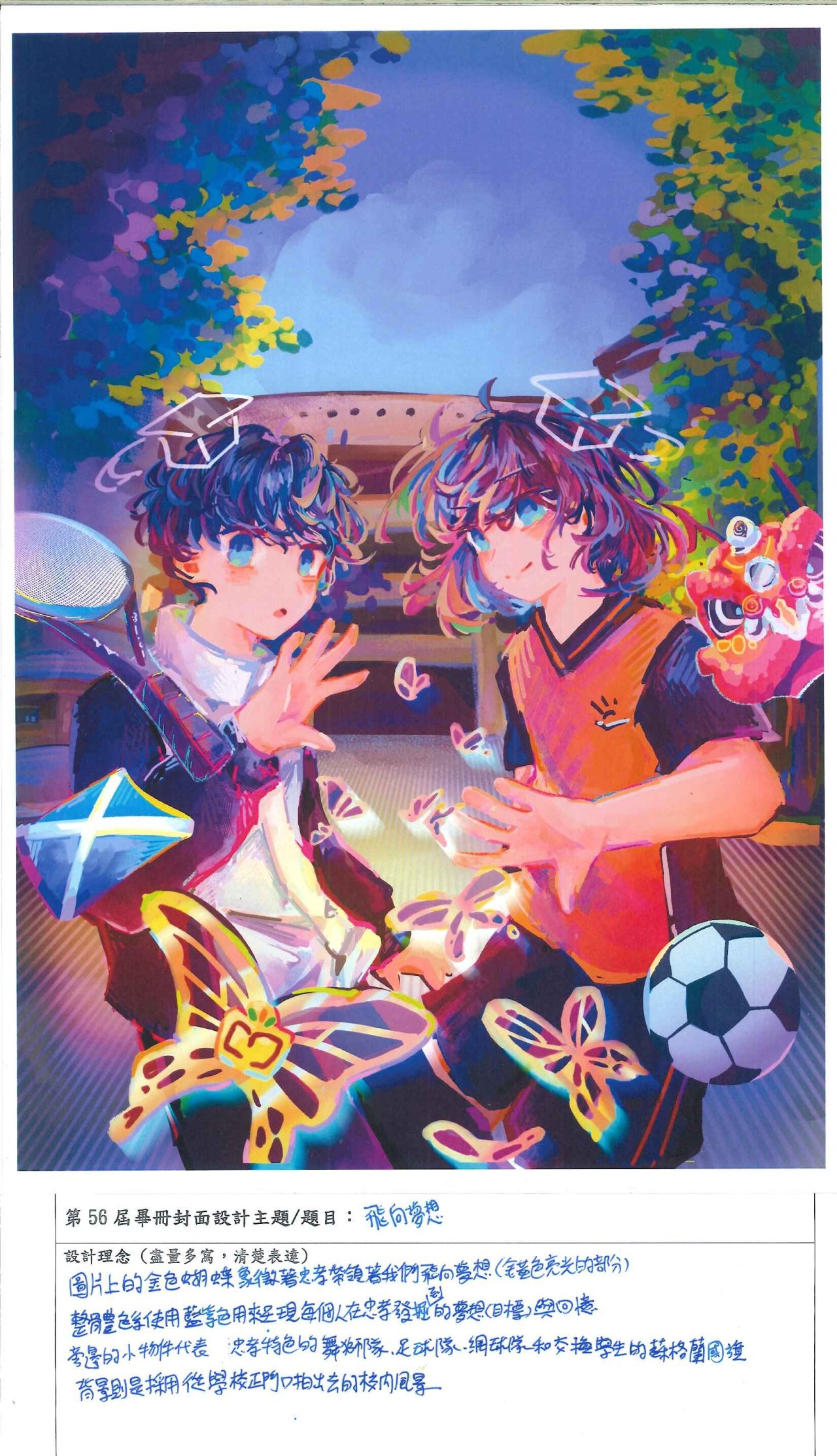() 得票第1名作品製作為畢業紀念冊封面,第2名作品放置於封底,其餘為畢業紀念冊內頁之插圖。