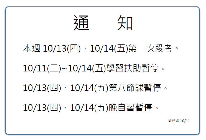 重要公告 教學組長 - 教務處 | 2022-10-11 | 點閱數: 333