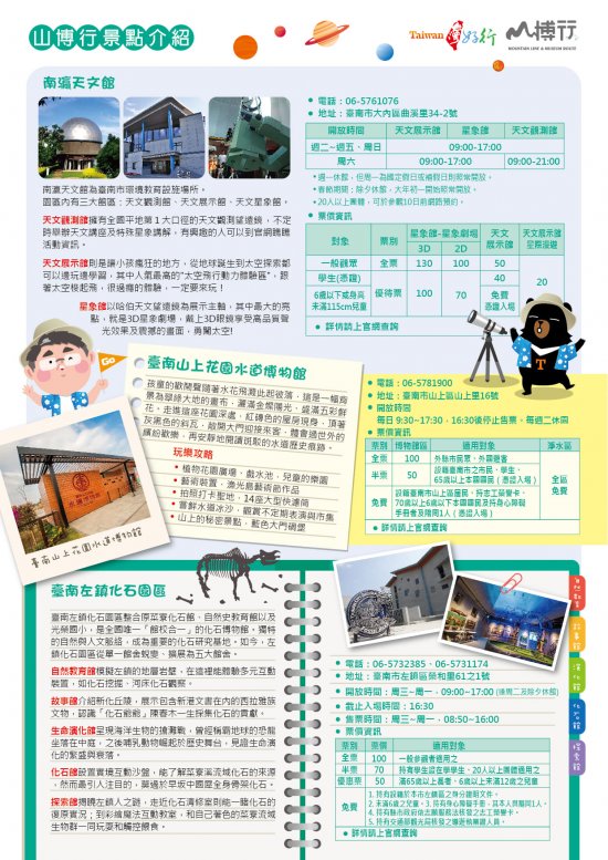 二、另於 110 年 4 月 1-30 日(假日)搭乘台灣好行山博行線星空限定車(無障礙班次),下載活動指定 APP 掃描車內特定星座圖卡,即可獲得 AR 刮刮卡,中獎者可至南瀛天文園區展示館服務台免費兌換台灣好行山博行線考古包 1 個(市價 499 元,限量 100 個,送完為止)。