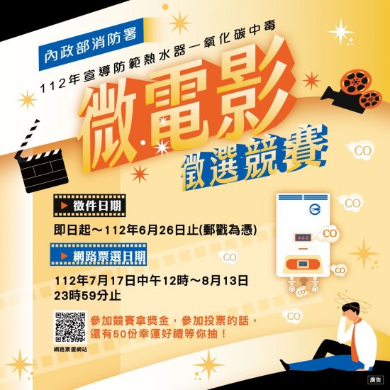 二、為增加旨揭競賽宣導能見度及資源運用,內政部消防署製作橫幅廣告及宣傳圖卡各 1 份,請協助於網站刊登及透過各式宣導通路協助推廣,以擴大宣導效能。
