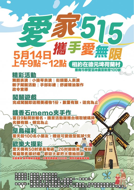 一、目的:透過親子共學、同樂與互動體驗活動,宣導「眼、耳、口、手、心 5 到學習行動」,協助民眾將對家人的愛與關懷轉化為實際行動,營造正向、健康、和諧的幸福家庭。
