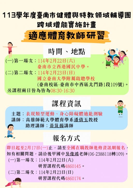(二) 第二場次: 114 年 2 月 23 日(日),國立臺南大學附屬啟聰學校。(臺南校區-臺南市中西區北門路 1 段 109 號)。
