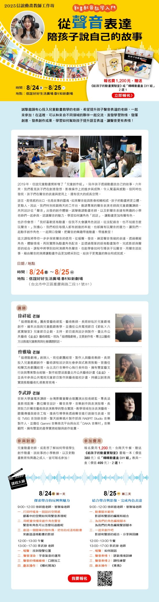 2025 信誼動畫教師工作坊-動畫配音教學入門」,敬邀貴校教師報名參加,請查照。