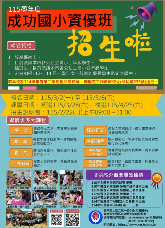 115 學年度成功國小招生資訊網