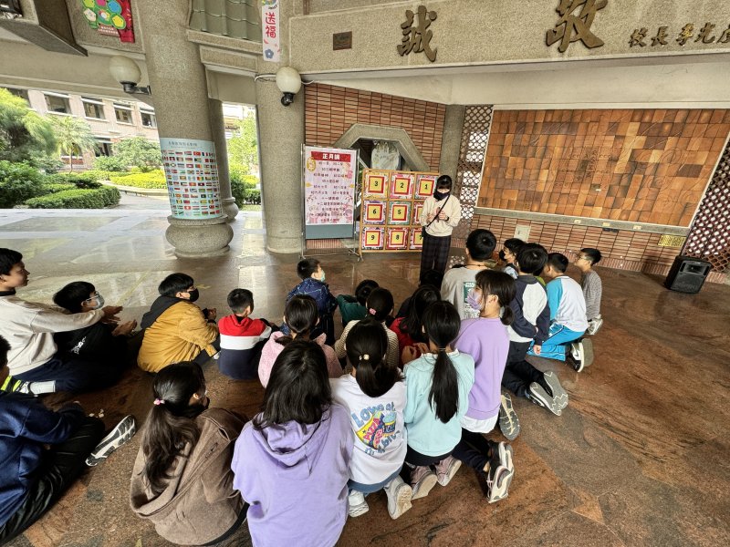 介紹正月調,並且設計猜謎活動,使用母語跟學生進行猜謎問答,達隊的中年級學生,可以獲得一份獎勵品。