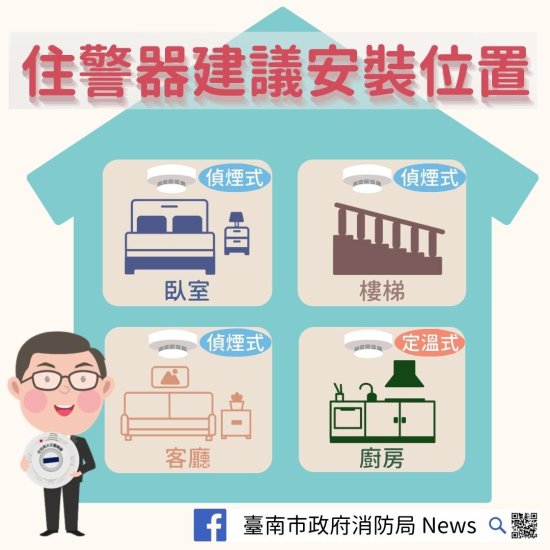 二、裝設住宅用火災警報器,守護您的居家安全。