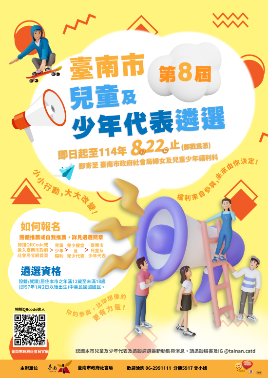 臺南市政府社會局首頁/兒童少年福利/兒少權益及兒少代表/臺南市兒童及少年代表)