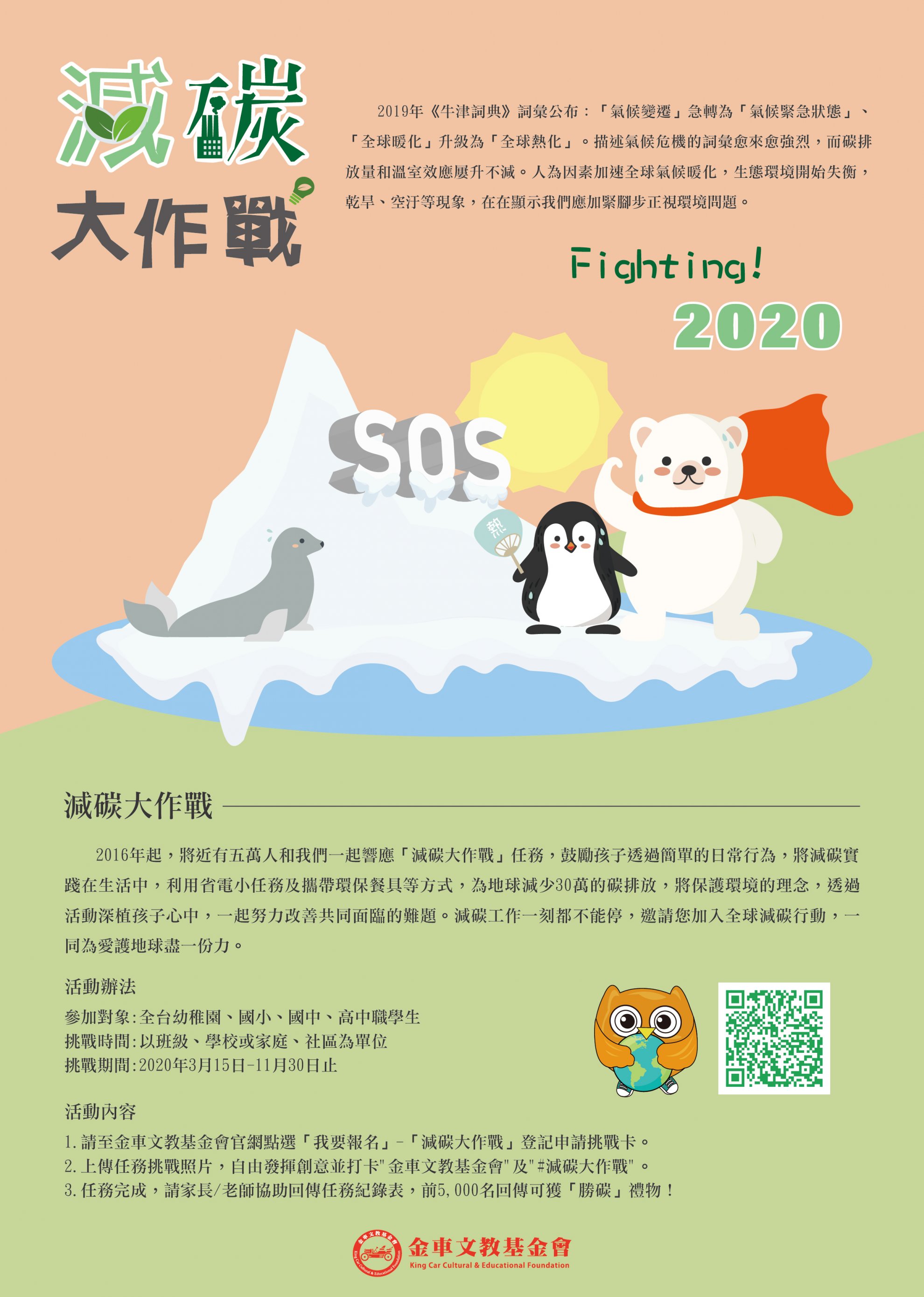 一、近年來,全球氣候產生極大的變化,世界各國均已致力開發新能源,並積極推動節能減碳政策及教育,以延緩地球暖化速度。本活動鼓勵學生透過日常行為,將節能減碳落實生活,透過簡單的任務挑戰,將保護環境理念深植學生心中。