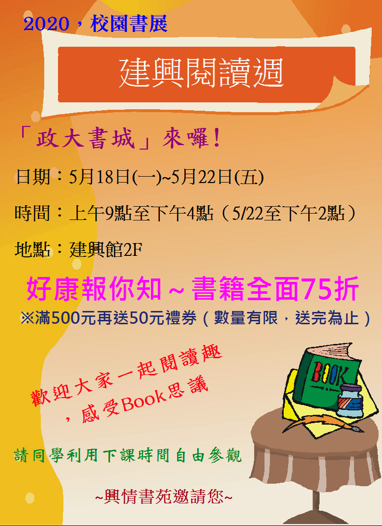 日期: 5 月 18 日(一)~5 月 22 日(五) 時間:上午 9 點至下午 4 點( 5/22 至下午 2 點) 地點:建興館 2F