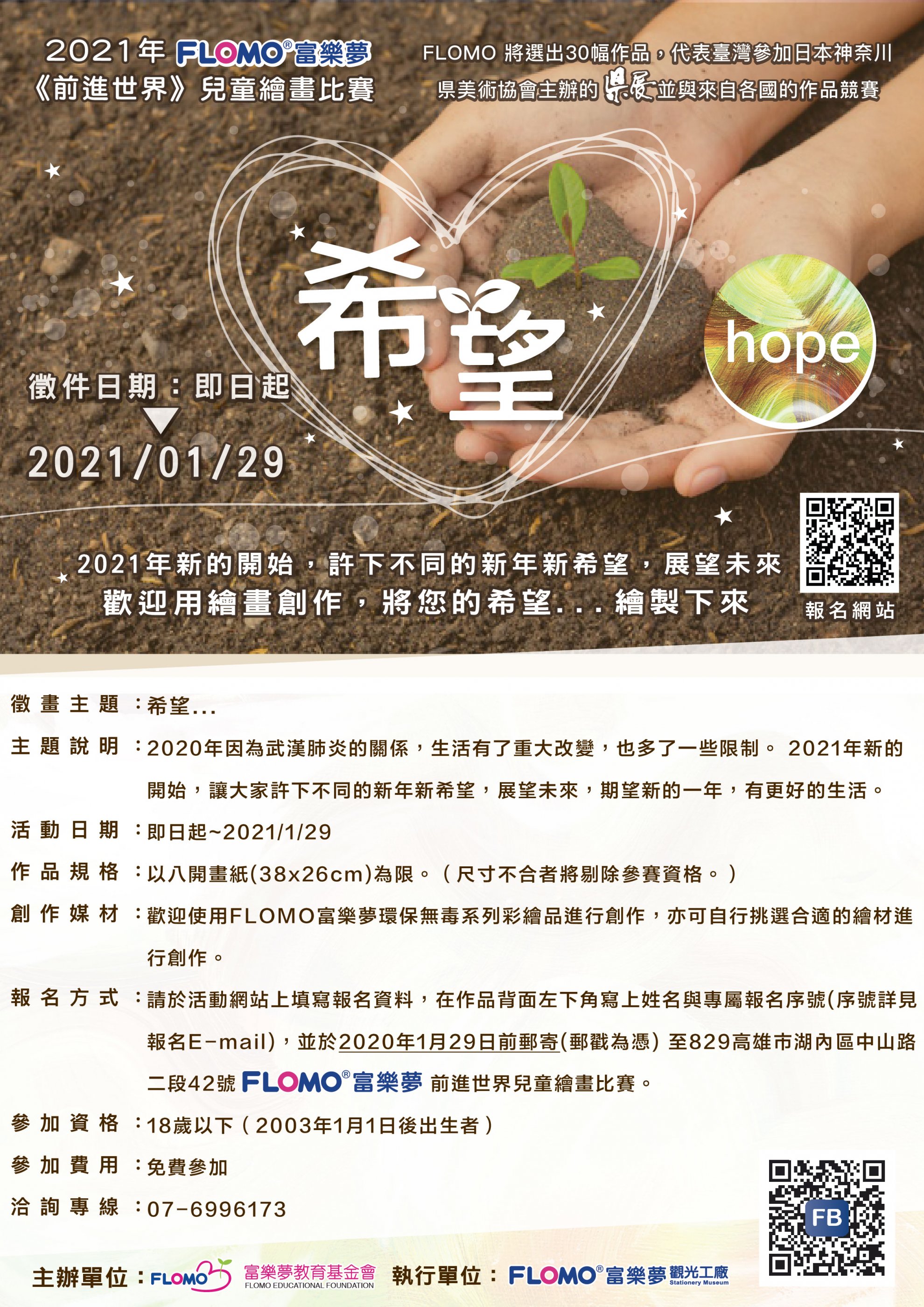 一、為讓臺灣孩子藉由畫作走出國門,前進世界,也讓世界感受臺灣孩子豐沛的創作能量, FLOMO 富樂夢自 2016 年起與日本神奈川縣美術家協會主辦的《県展》合作,將臺灣徵選的優秀作品送至日本展出,並與來自各國的兒童作品競賽。截至 2020 年已有逾千位小朋友參加甄選,作品頗受日本美術界肯定,數次奪得日本県展 JUNIOR 賞青少年獎等殊榮。