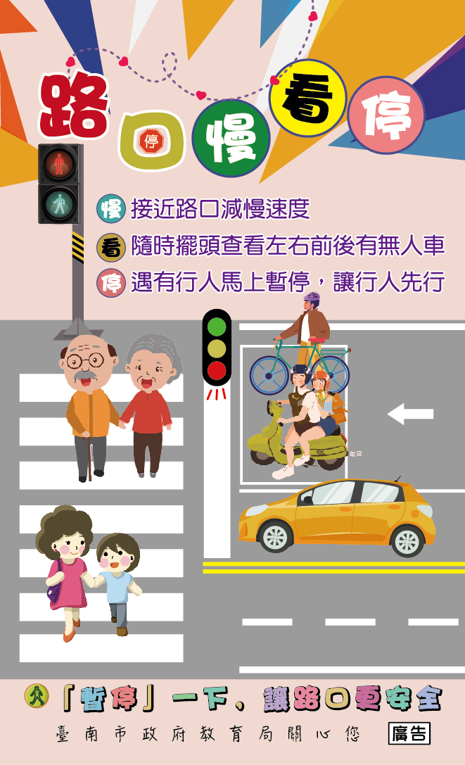 (四)行人行走行穿線、不任意穿越車道、闖紅燈。