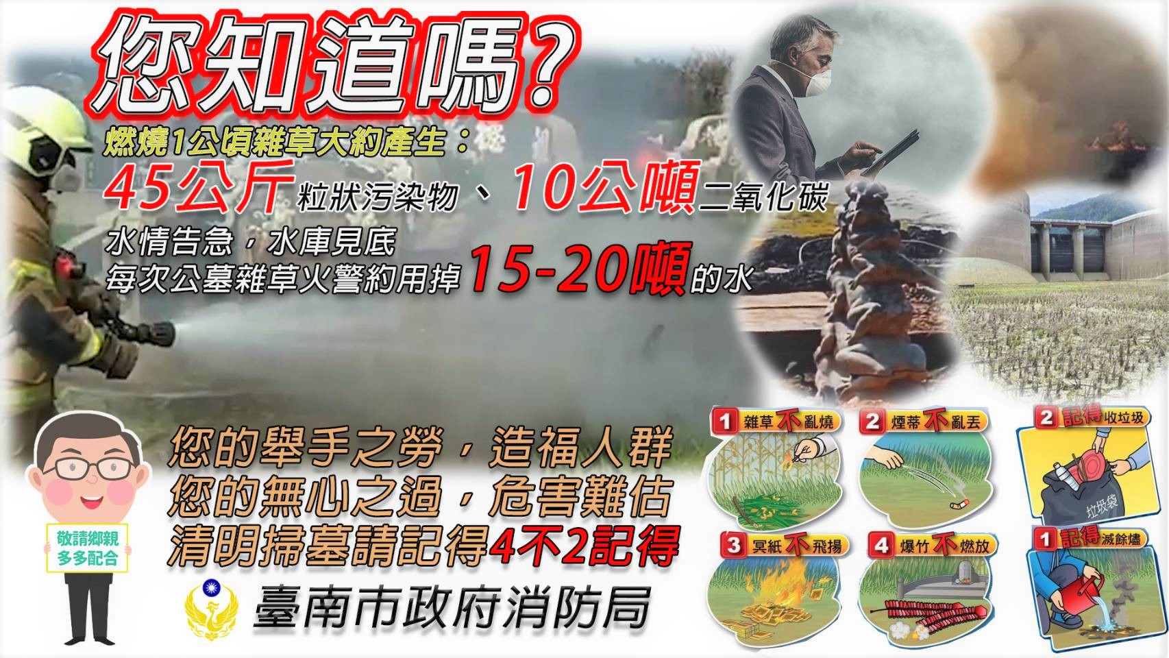 二、檢送清明節防火宣導海報 4 份(如附件),請提醒師生及家長於掃墓祭祖時多留心,共同預防山林墓地火警。