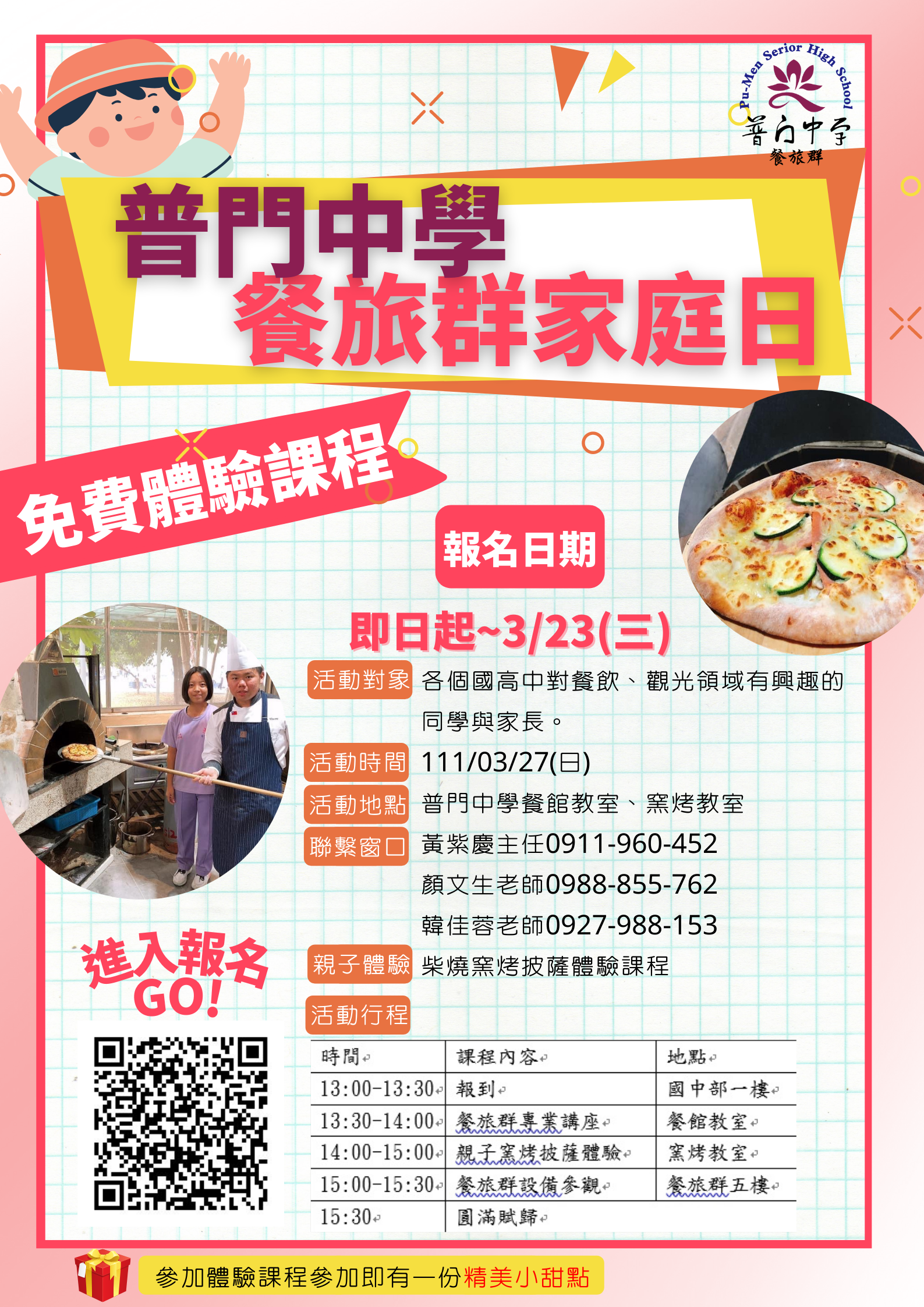 三、主辦單位:普門中學 餐飲管理科 觀光事業科。