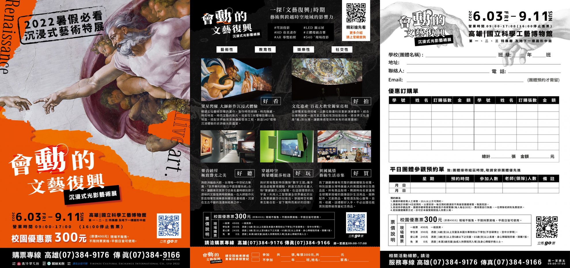 一、本館與翡冷翠文創共同策劃本展,帶領莘莘學子不必出國 即可深入瞭解文藝復興經典藝術,以及運用現代科技演繹 歷史名畫的難得體驗,是今年暑假老師、學生與親子共學 必看的特展。