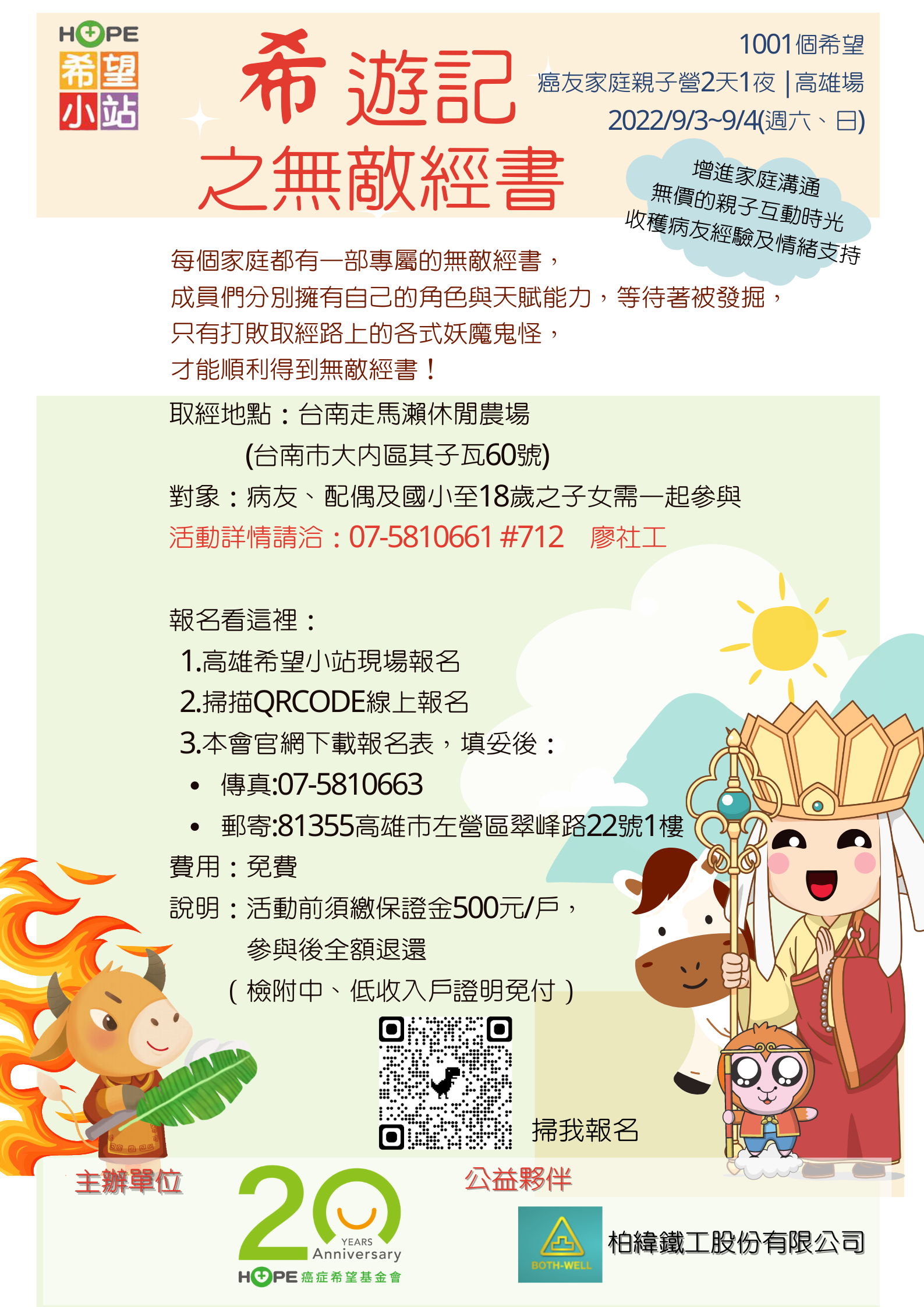 五、本活動報名時間自即日起至 2022 年 8 月 12 日止,並視疫情狀 況保留調整日期之彈性。如有未盡事宜,請電洽該會活動 負責人 07-5810661 分機 712 廖社工。