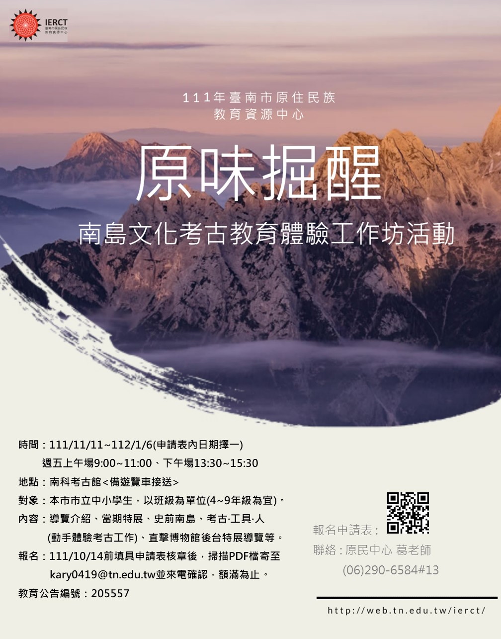 2.活動地點:南科考古館(臺南市新市區南科三路 10 號)。<<備有遊覽車接送>>