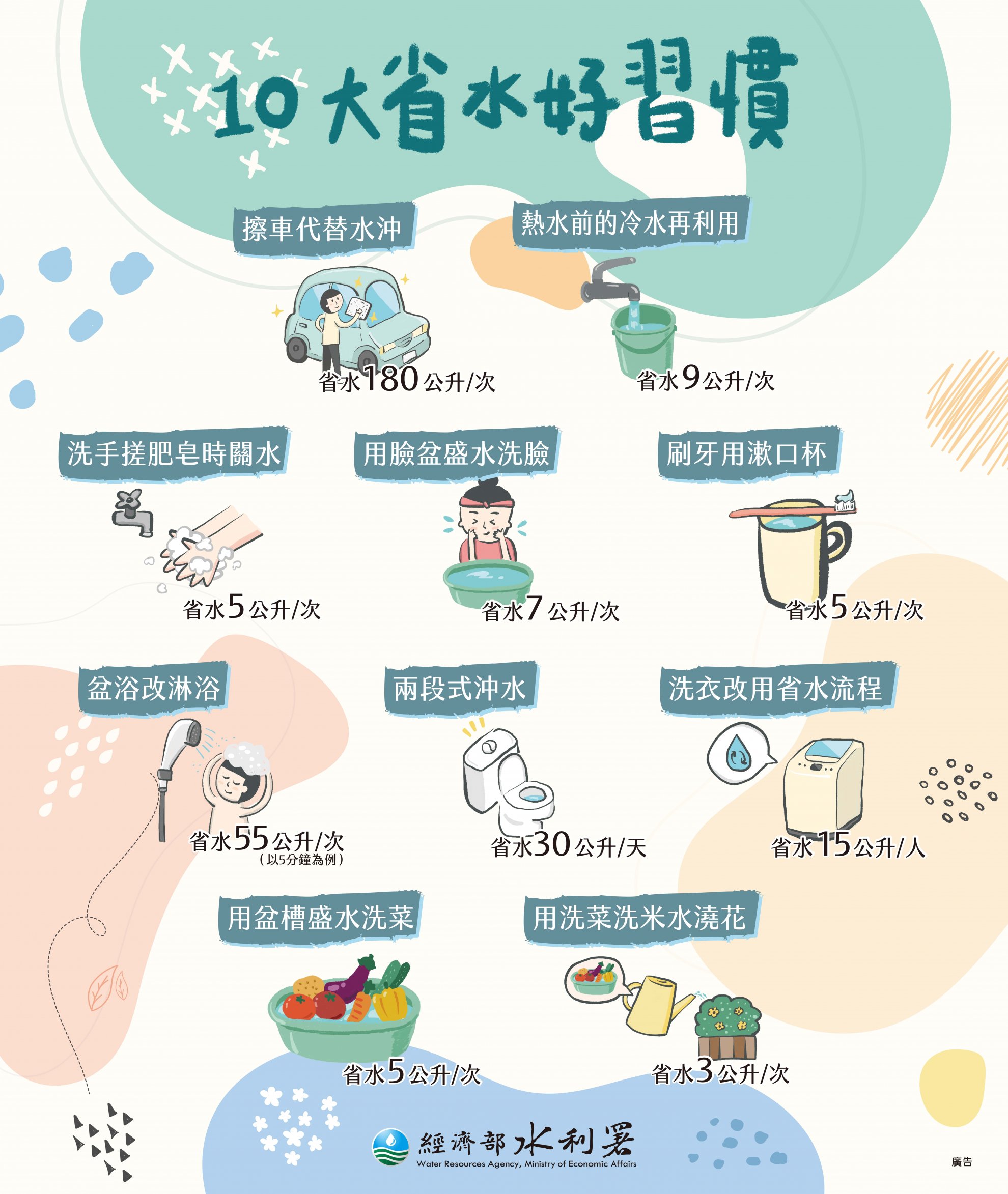 2 、因應本市曾文水庫及烏山頭水庫蓄水率僅約 53.8%,水情不佳,加強節水教育宣導,各項節水行動應以「用則當用、省則當省」為原則,並請注意衛生及兼顧防疫需求,以維持正常生活。