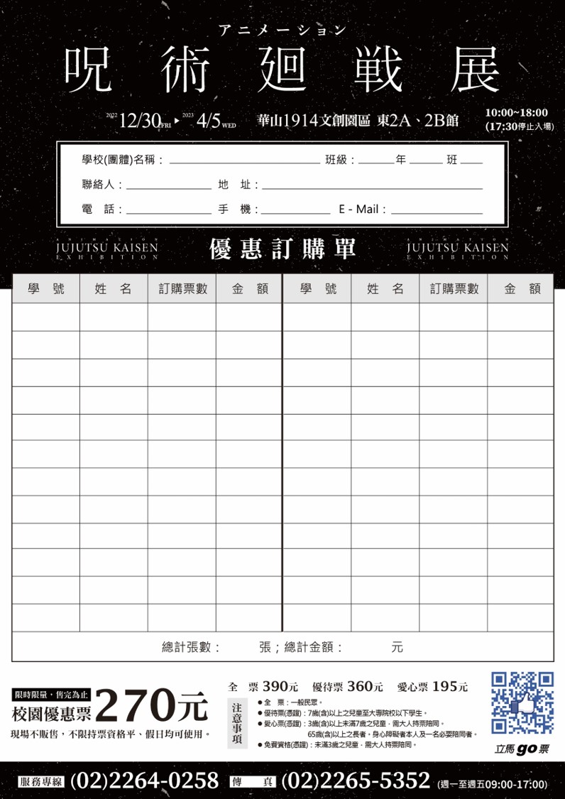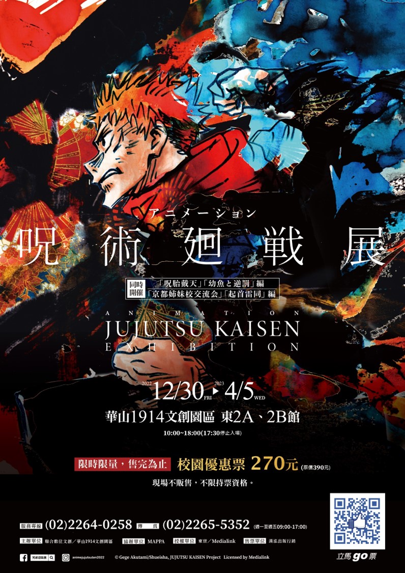 於 111 年 12 月 30 日~112 年 4 月 5 日於華山 1914 文創 產業園區東 2A 東 2B 館舉辦「咒術迴戰」展