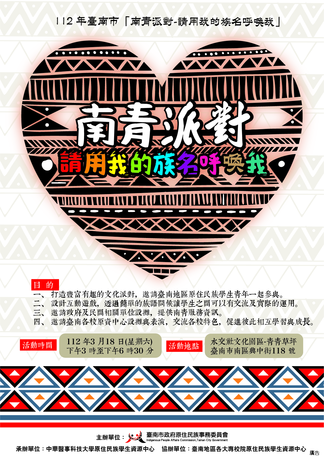 一、本活動訂於 112 年 3 月 18 日(星期六)下午 3 時至 6 時 30 分 整,假本市水交社文化園區(臺南市南區興中街 118 號)舉 行。