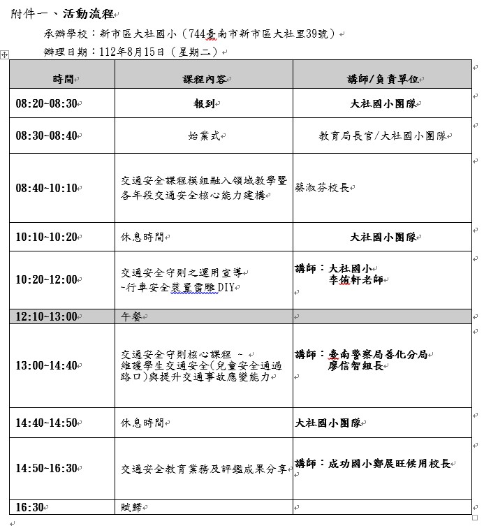 (二)辦理地點:臺南市新市區大社國小辦理。