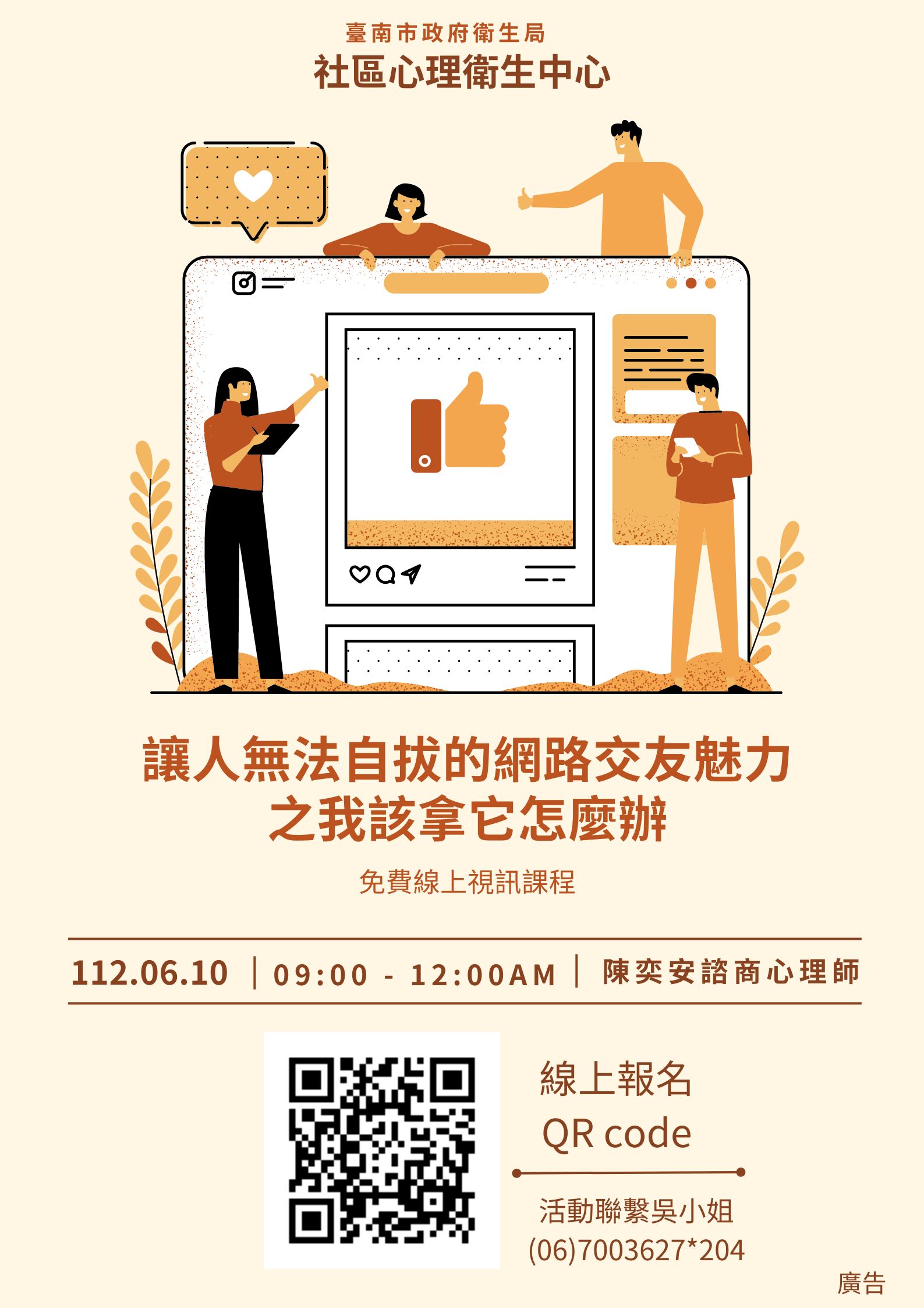 二、旨揭講座將提供網路交友的正確觀念,如何調節因網路交友產生的情緒。