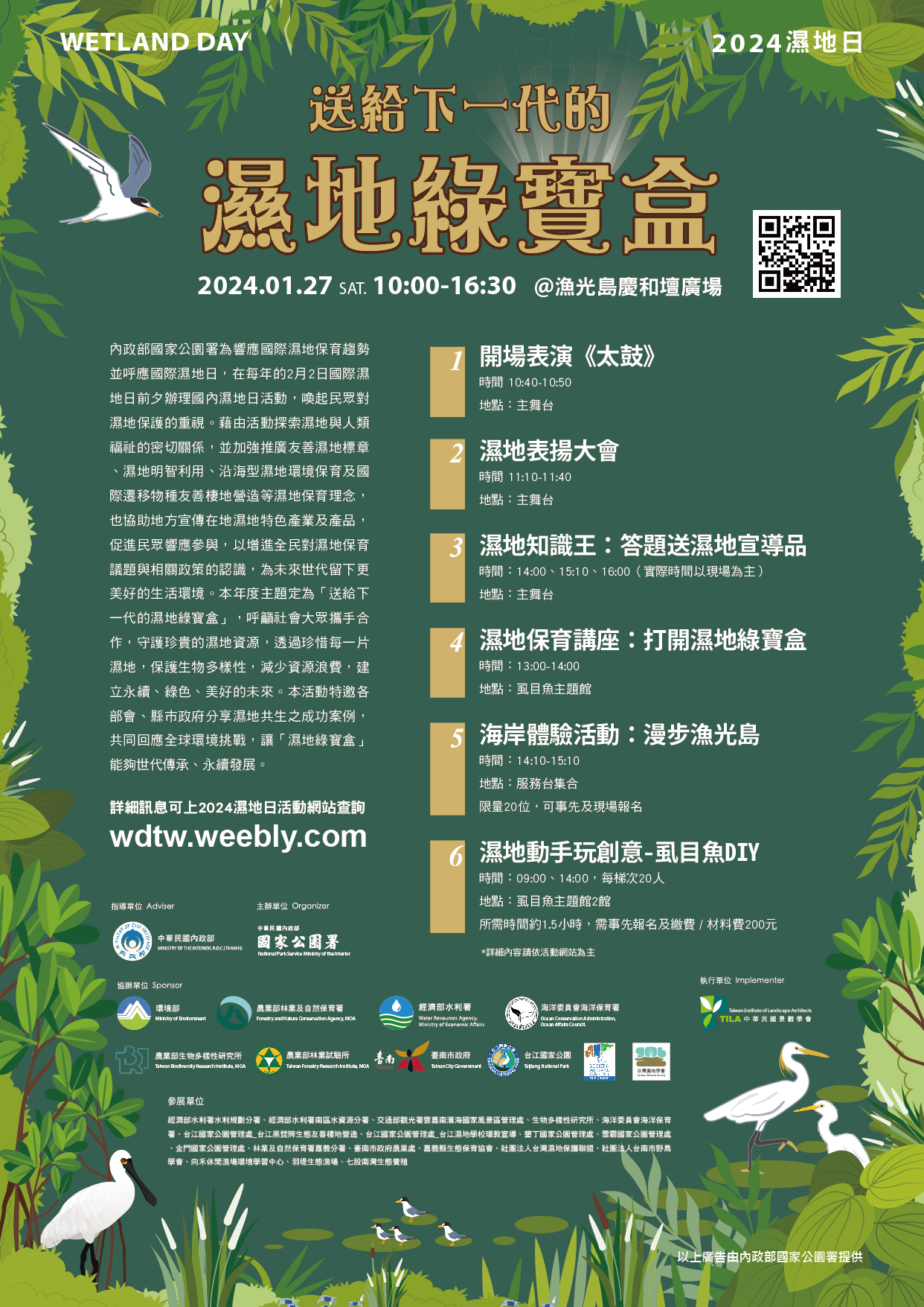 五、 相關活動資訊已登載「國家公園署入口網」( https://www.nps.gov.tw/)及「濕地保育資訊網」( https://wetland-tw.tcd.gov.tw/tw/index.php )。