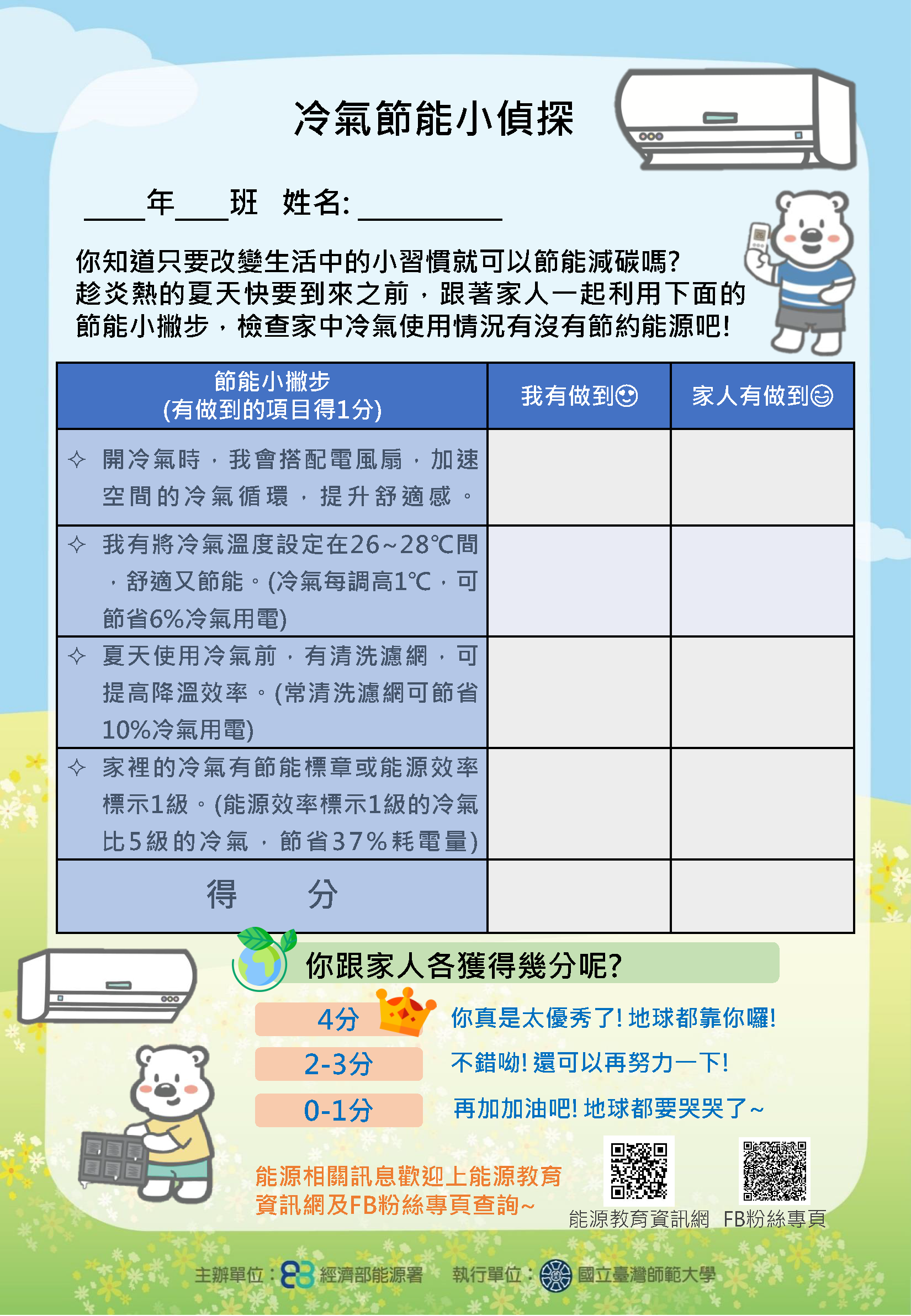 夏季將至,能源署提供冷氣節能小偵探學習單,提供節能小撇步供學生及家長參考。