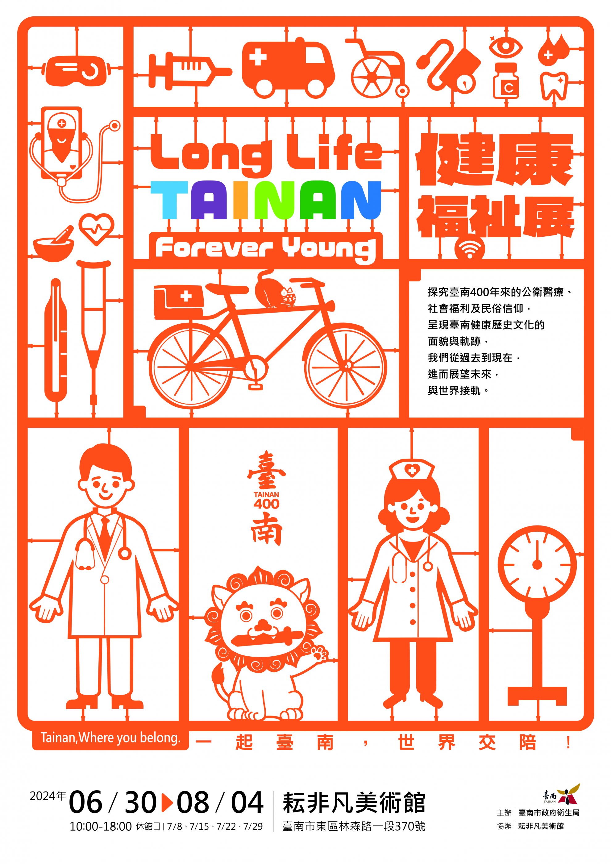 一、為使學生更加瞭解臺南健康歷史文化的面貌與軌跡,衛生局籌畫《臺南 400-健康福祉展》,展現臺南四百年來的公共衛生醫療、照護、社會福利及民俗信仰的史程,以及融合未來趨勢科技所創造出的智慧生活嶄新面貌,讓這些議題更貼近生活,進而更認識所在的這片土地、找到認同與歸屬感,一起為臺南驕傲。