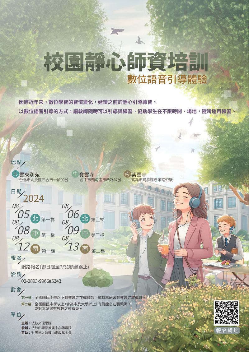 轉知法鼓文理學院 2024『全新升級』校園靜心師資培訓-數位影音引導體驗相關訊息