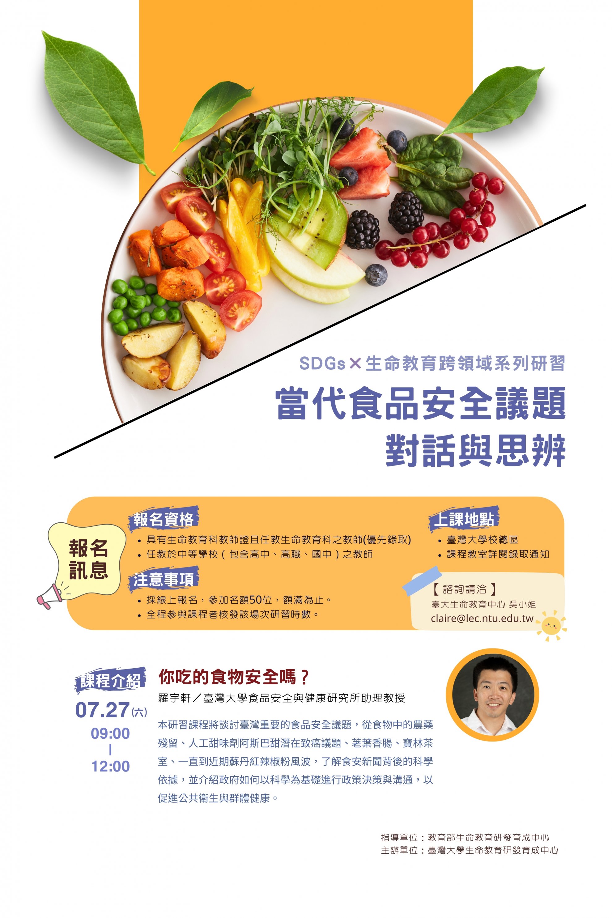 1、 7 月 27 日:當代食品安全議題對話與思辨。