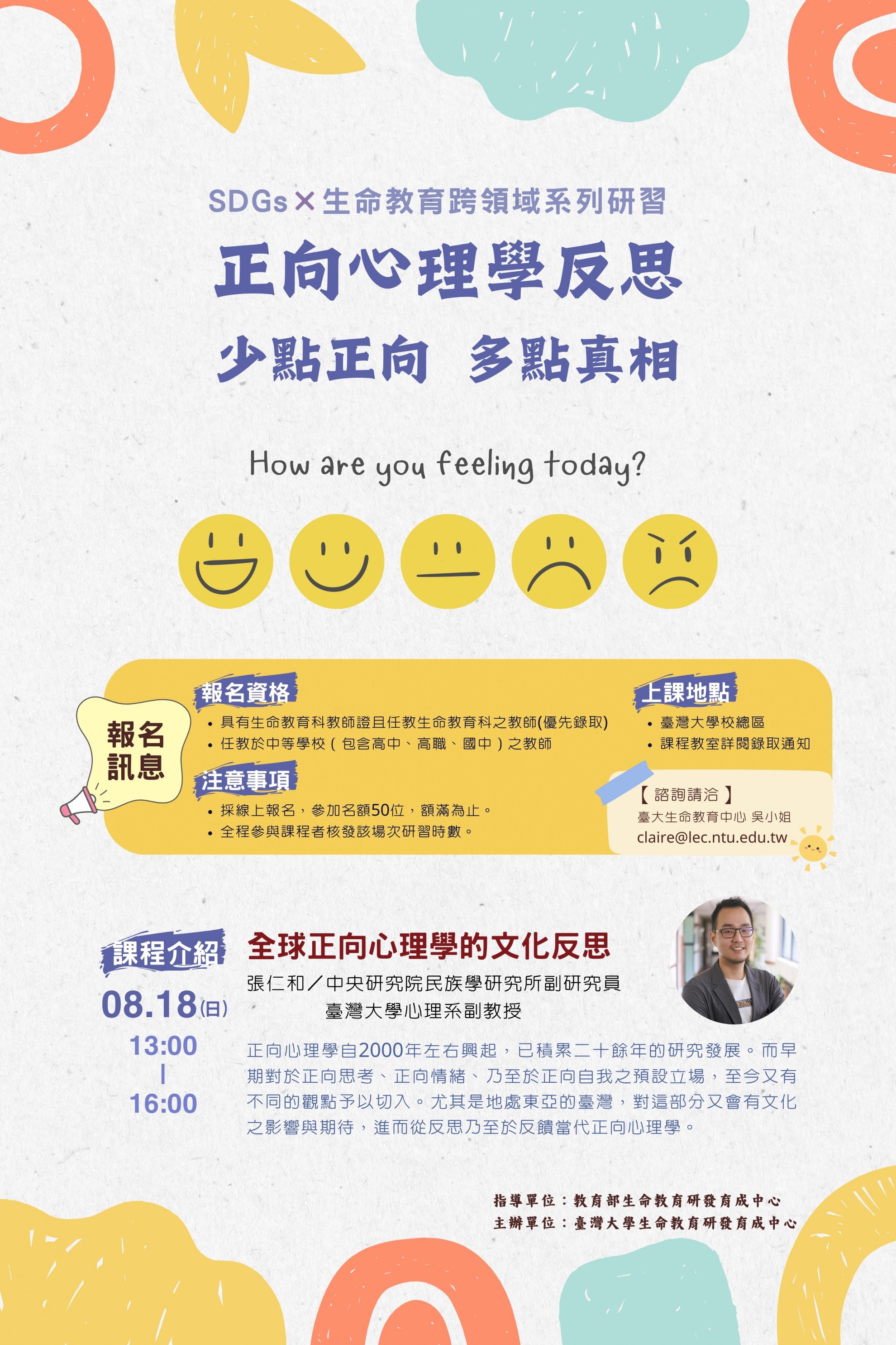 二、本研習規劃 3 個場次,詳細內容請參閱附件簡章及 EDM 。