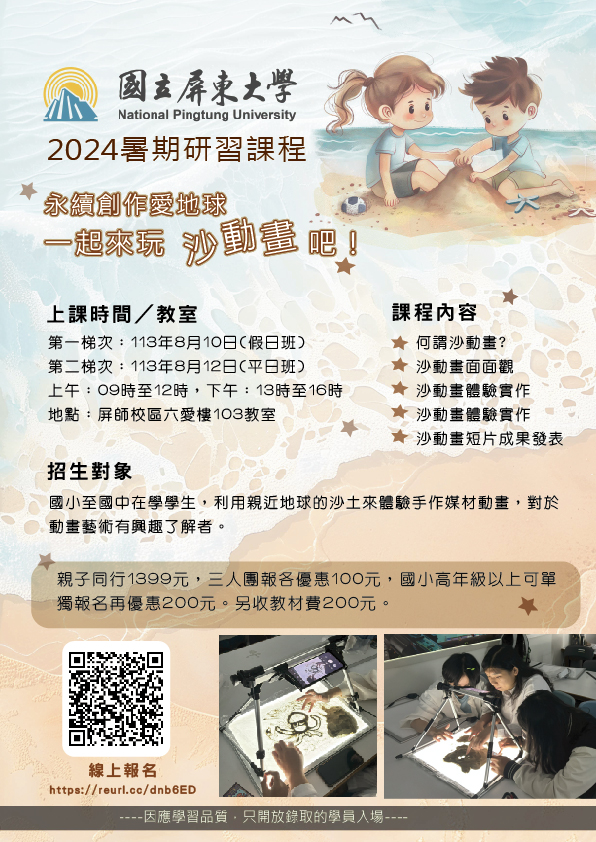 國立屏東大學辦理暑期研習課程「沙動畫藝術講座」,請對手作沙動畫藝術有興趣的學生及家長報名參加
